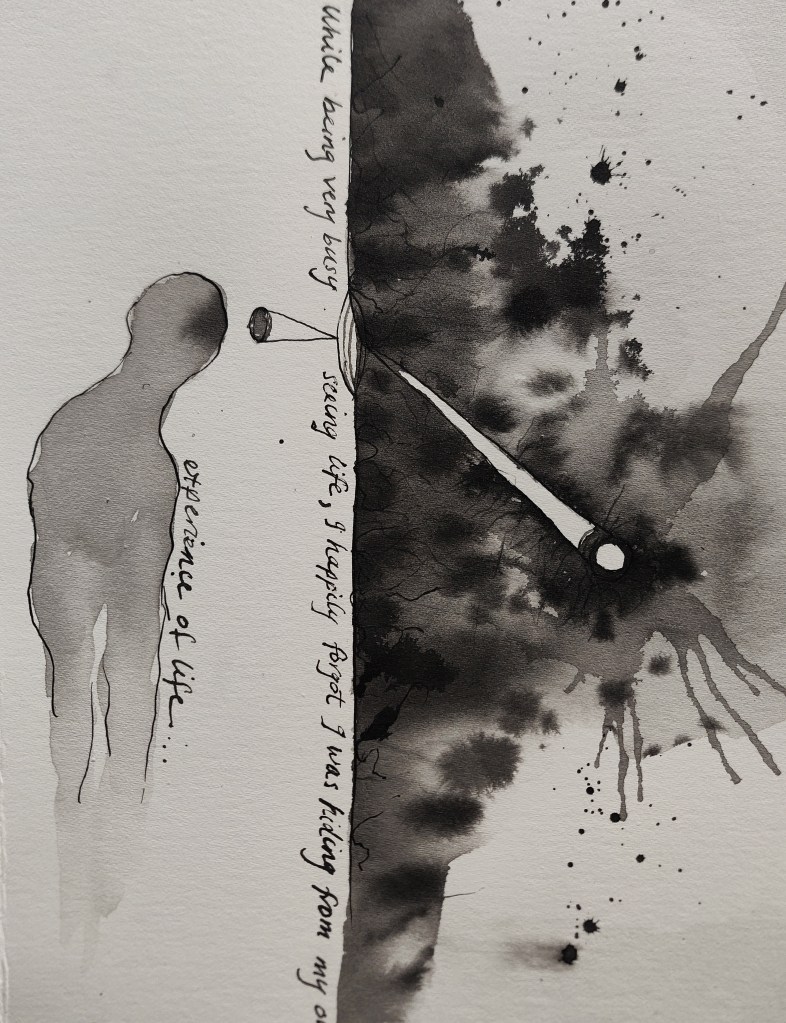 DURATION is also a series of drawings – black carbon ink on white paper on white bare walls.